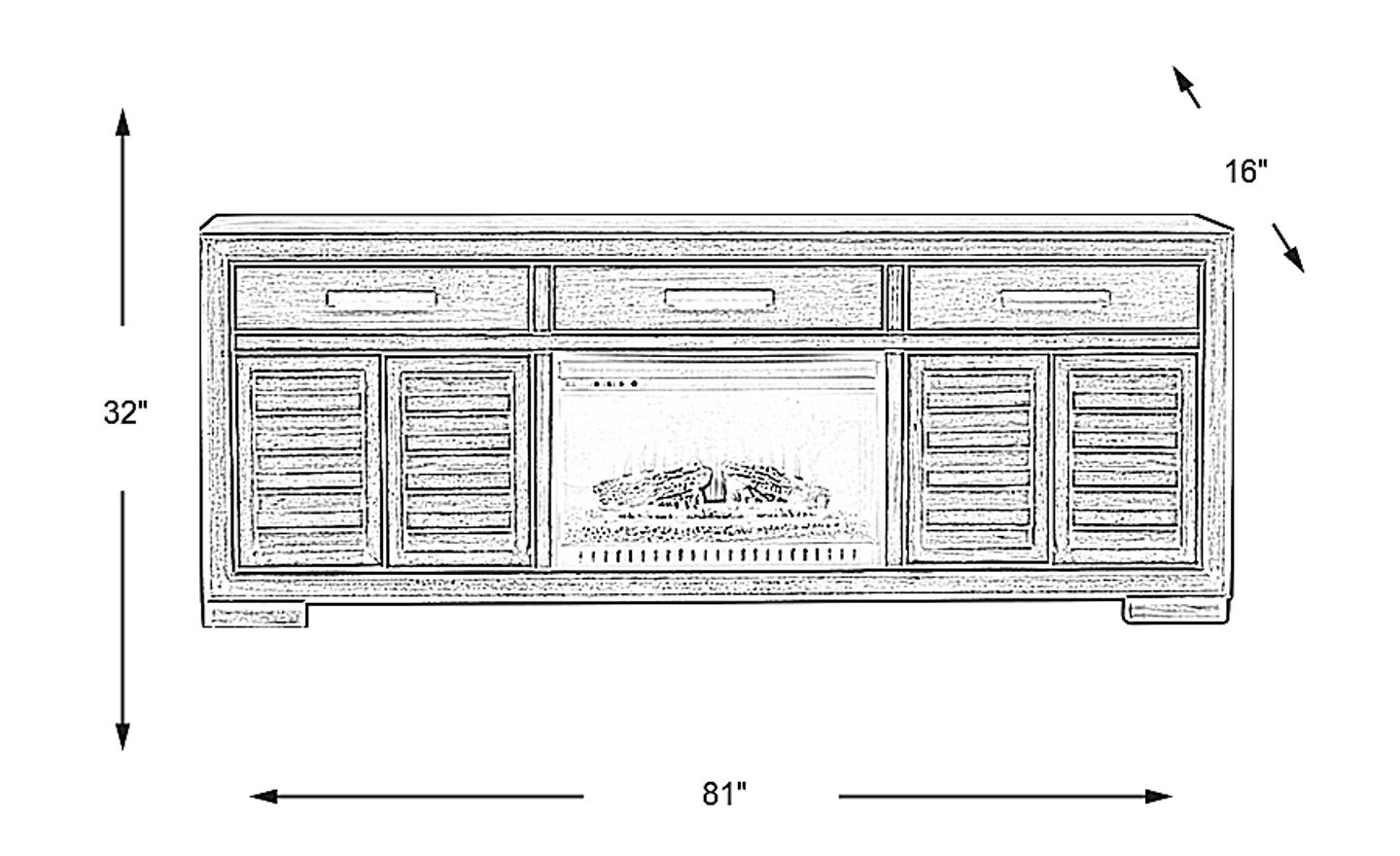 Transitional style and media storage combine with the cozy warmth of an electric fireplace on the Cates Ridge console. Finished in a neutral light gray finish, the 81 inch console is made with oak veneers. Three drawers provide easy storage while double doors below open to reveal an adjustable shelf for keeping additional items. The electric fireplace features innovative flame effects on bricks and logs for added depth and 3D realism. A convenient remote control adjusts the flame and glow levels and includes a built-in timer (from 30 minutes to 60 hours). The adjustable thermostat ranges from 62 degrees to 82 degrees.
