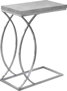 If you need a versatile and high functioning furniture piece, look no further than this contemporary style Cauley accent table. The spacious rectangular table top made from quality MDF material has a chic laminated gray cement-look surface supported by chrome metal legs that showcase intersecting circles in a stylish design. Slip the sturdy chrome metal base under a sofa or arm chair and use it to put down your drinks and snacks or as a convenient place for your tablet or laptop within reach. You can also set it on the side as a handy end table next to a sofa, armchair, or a bed. Easy to move from room to room, you'll end up buying more than one! Customer assembly is required.