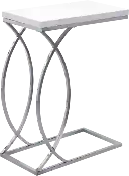 If you need a versatile and high functioning furniture piece, look no further than this contemporary style Cauley accent table. The spacious rectangular table top made from quality MDF material has a chic laminated glossy white surface supported by chrome metal legs that showcase intersecting circles in a stylish design. Slip the sturdy chrome metal base under a sofa or arm chair and use it to put down your drinks and snacks or as a convenient place for your tablet or laptop within reach. You can also set it on the side as a handy end table next to a sofa, armchair, or a bed. Easy to move from room to room, you'll end up buying more than one! Customer assembly is required.