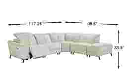 Steal the spotlight in a show-stopping performance of modern elegance with the Cavani collection's unapologetically luxurious look, feel and fabulousness. Beyond the dramatically flared arms and plush woven gray chenille, this contemporary sectional boasts a spacious and inviting seating arrangement that's perfect for lounging and entertaining. Dual power recliners enhance your comfort with the simple press of a button, allowing two people to fully control their own headrest and footrest completely independent of one another. A USB port on each control panel provides convenient USB charging. The bumper ottoman oriented on the right side of the piece rounds out the silhouette with a touch of sophistication while the chromium finish on the feet button the look with a modern edge. 100% Polyester