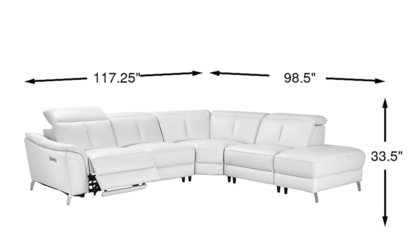 While this is a spacious 5-seater sectional, its design is optimized for sophisticated urban living. The flared arms and tapered chrome legs create a sense of "visual lightness," meaning the piece doesn't overwhelm a room despite its generous 117-inch width. Because it features a wall-hugging reclining mechanism, you can maximize your square footage by placing the sectional closer to the wall than traditional recliners, making it a perfect anchor for modern metropolitan condos or suburban great rooms.