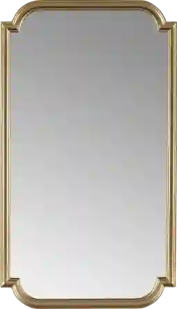 The Cavebit wall mirror is a timeless piece that adds elegance to any space. With its rectangular shape and scalloped corners, this mirror is perfect for bedrooms, guest rooms, living rooms, or entryways. The wood frame features a metallic gold finish, adding a glamorous flair to your decor. Crafted with mirrored glass on a sturdy MDF backing, this mirror is built to last. It comes ready to hang with convenient D-ring hangers, and its symmetrical shape allows for versatile hanging options, vertically or horizontally. Customer assembly is required.