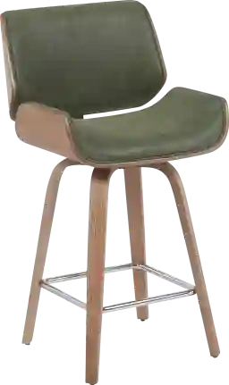 Bring a touch of mid-century charm and functional elegance to your home with the Cavologies green counter height stool. With its contoured wrap-around backrest, gently flared silhouette, and comfortably cushioned seat, the Cavologies delivers an elevated seating experience ideal for kitchen islands, peninsulas, and home bars. The modern, sculpted form supports your back while offering a soft, ergonomic curve that enhances posture and visual flow. Engineered for versatility, the Cavologies features a smooth 360-degree swivel mechanism, allowing you to stay engaged and mobile during conversations or meals. The generously padded seat and back are upholstered in performance faux leather, offering the luxurious feel of leather with everyday durability and easy cleaning. The base is crafted with a strong bentwood frame and a chrome-finished steel footrest, combining retro character with strength and stability. Customer assembly is required.