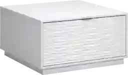 The Caxambas white cocktail table has strong and lightweight panel construction for easy transitions. Contains two drawers with full extension slides for easy access storage. Drawer fronts are accented with decorative wave pattern. Finished on all sides for versatile placement in the center of your space. Customer assembly is required.