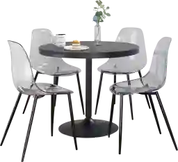 Based on our furniture care expertise, we recommend dusting the surfaces regularly with a soft, clean cloth. For fingerprints or spills on the clear chairs or the black pedestal base, use a mixture of mild soap and warm water. It is important to avoid harsh chemical cleaners or abrasive sponges, as these can scratch the transparent materials or dull the black finish over time.