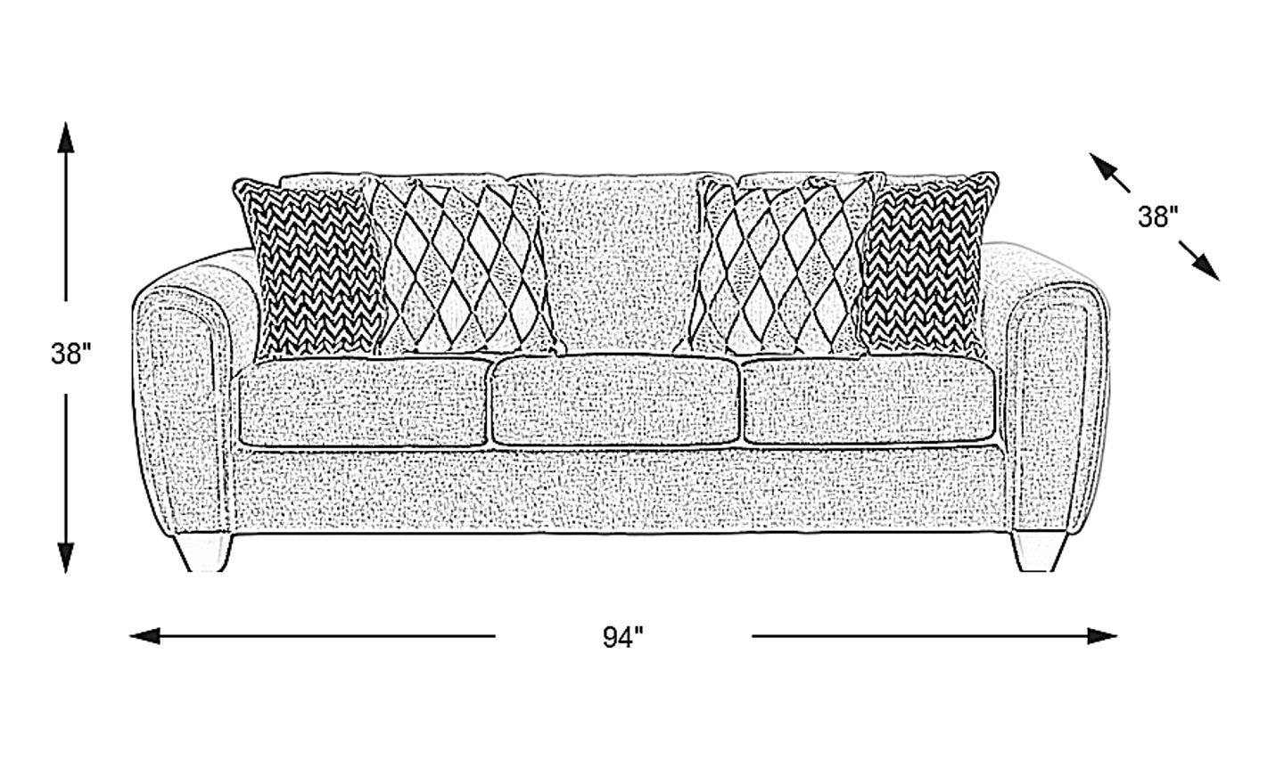 94"w"w x 38"d"d x 38"h"h