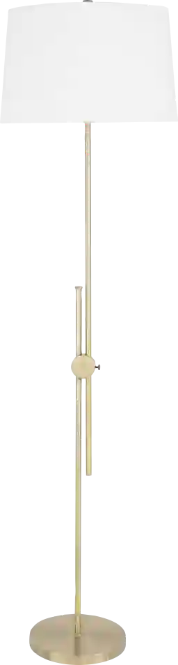 The Caywood Place brass floor lamp offers an enduring presentation of the modern form that will beautifully revitalize your intriguing home. This lamp is expertly crafted and hand finished to perfection ensuring quality, helping to make this lamp a mainstay in your home with an off-white polyester shade. Partial assembly may be required.