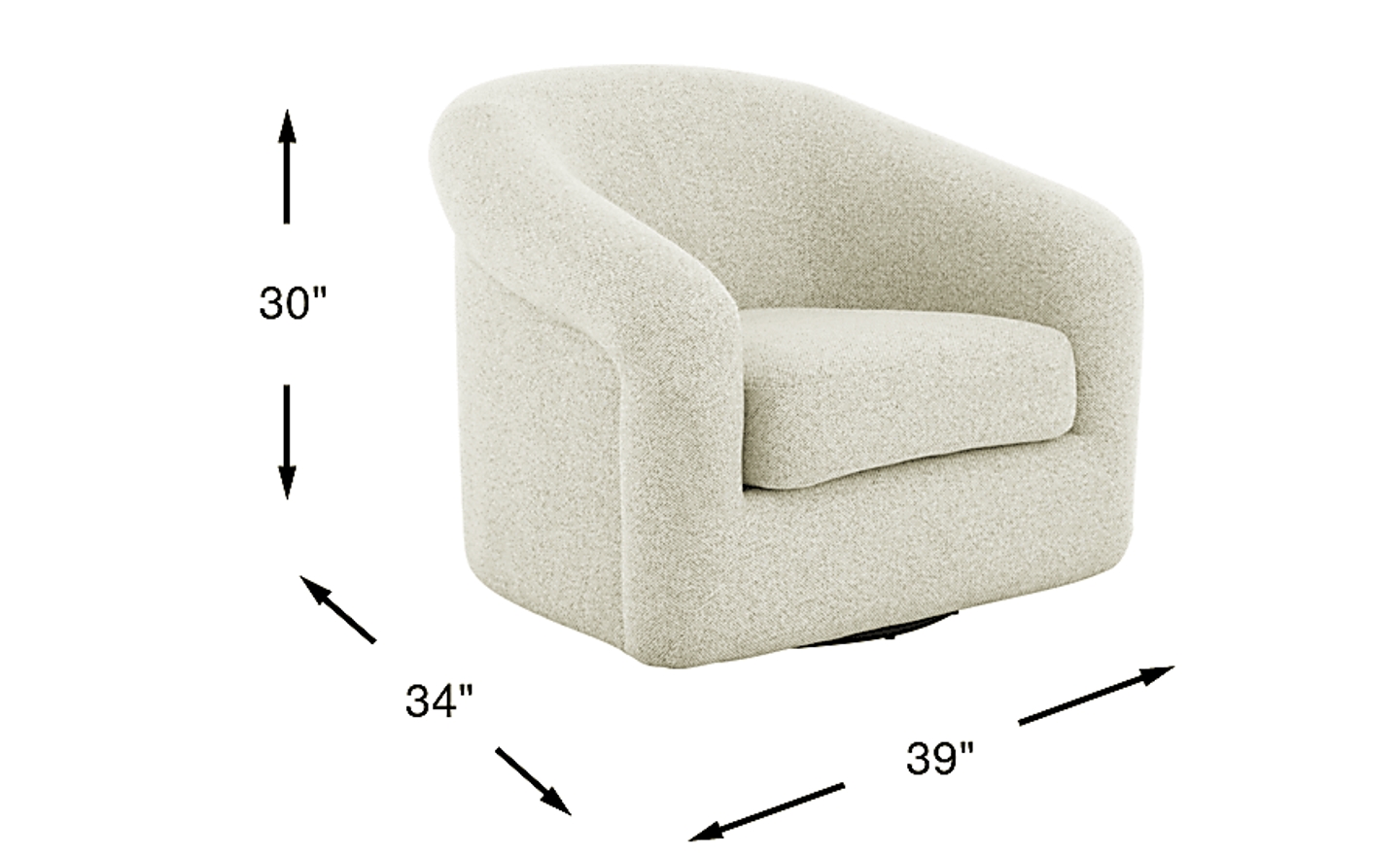 Time slows and relaxation arrives like a gentle wave with the serenity of welcoming sophistication in the Cecilia swivel chair's sculptural curves and versatile style. This transitional piece is wrapped in beige woven fabric for a visually rich texture and inviting feel. The curved barrel back and soft seat cushion deliver cradle-like comfort with every sitting. Its 360-degree swivel base provides smooth and effortless movement, keeping you engaged in conversations from any angle. Upholstery: 100% polyester.