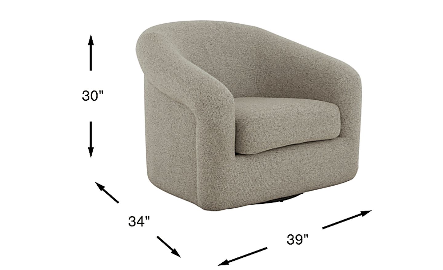 Time slows and relaxation arrives like a gentle wave with the serenity of welcoming sophistication in the Cecilia swivel chair's sculptural curves and versatile style. This transitional piece is wrapped in gray woven fabric for a visually rich texture and inviting feel. The curved barrel back and soft seat cushion deliver cradle-like comfort with every sitting. Its 360-degree swivel base provides smooth and effortless movement, keeping you engaged in conversations from any angle. Upholstery: 100% polyester.