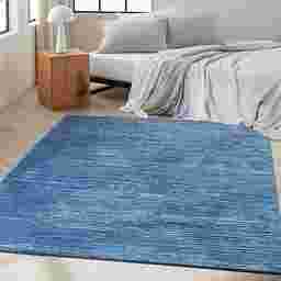 This rug can be a stylish addition to a pet-friendly home, particularly due to its textured, abstract pattern and blue color palette, which are excellent for masking pet hair and minor daily wear. The wool blend is naturally more stain-resistant than many synthetic fibers. However, the "loop" portion of the pile can occasionally snag on pet claws, so we recommend keeping your pet's nails trimmed to maintain the rug's handmade integrity.