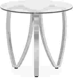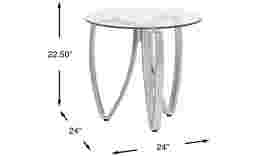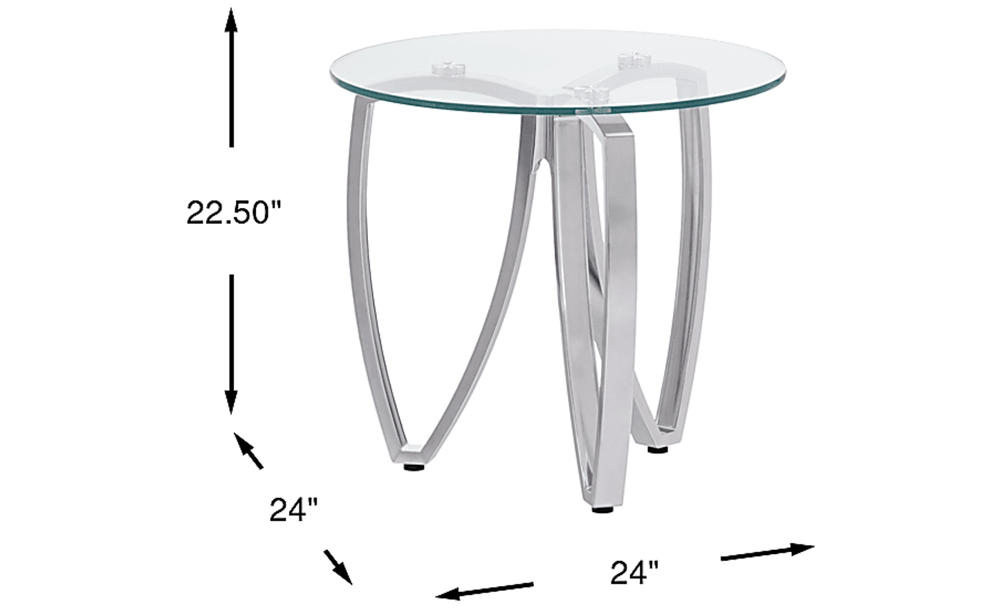 The sleek minimalism of silver and glass pairs beautifully with neutral upholstery, such as gray, charcoal, or cream. To lean into the contemporary aesthetic, our stylists recommend keeping the surface clutter-free to showcase the table's sculptural arcs. A single high-contrast decorative item, like a matte black vase or a sleek metallic lamp, can serve as a sophisticated focal point while letting the table's airy design shine.