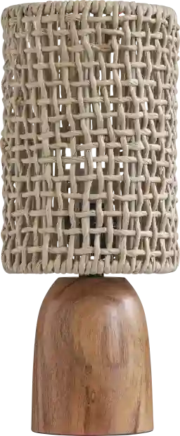 The Cen Natural Lamp feels like a little piece of earthy artistry-its smooth, hand-carved wooden base glowing with warm, natural grain, rising gracefully into a woven shade that looks like it was crafted at a sunlit coastal market. The open lattice design lets the light spill through in the softest, most enchanting patterns, creating a warm, dappled glow that instantly relaxes a room. Organic, textural, and beautifully grounded, it brings nature indoors in the most stylish, understated way. Let its warm wood, artisanal weave, and cozy, glowing charm be the reason you bring it into your home. Partial assembly may be required.
