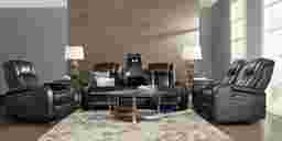 Cenova Black Leather 5 Pc Living Room With Dual Power Reclining Sofa