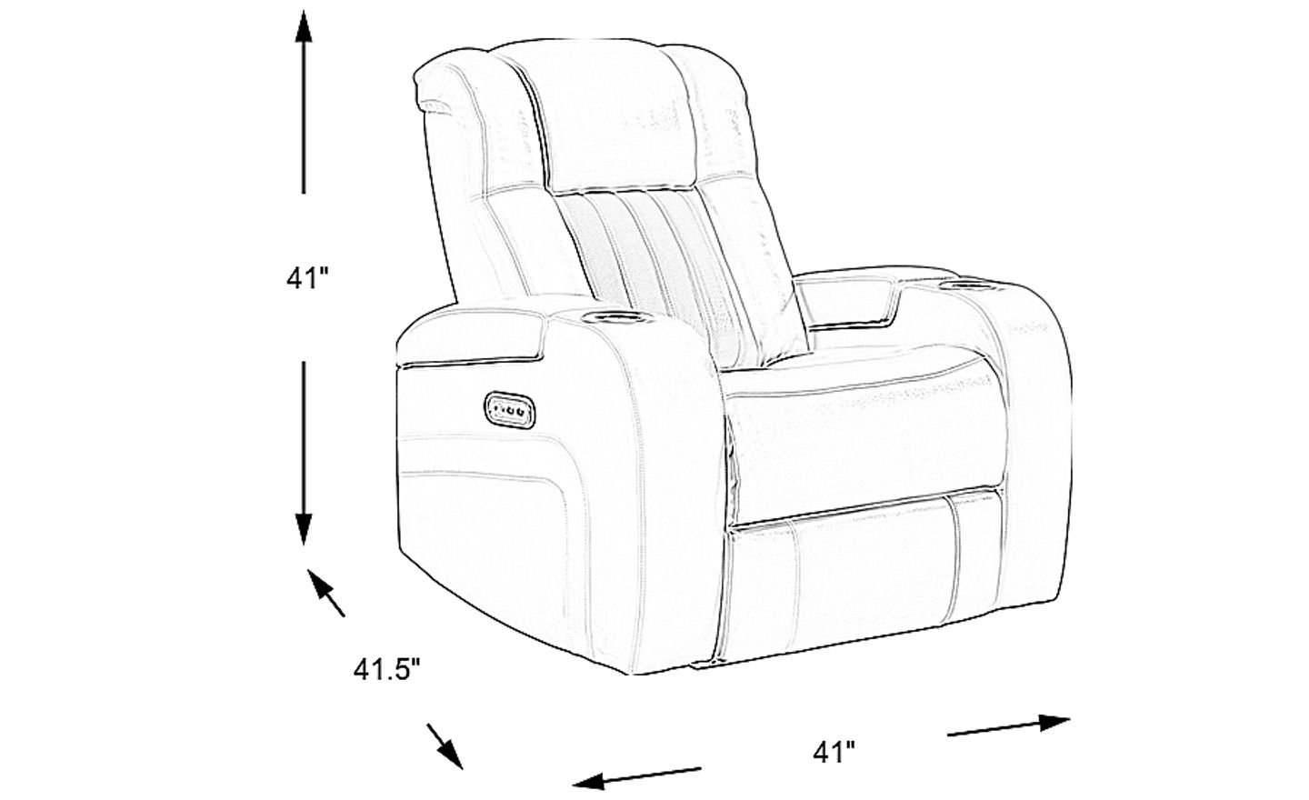 Add comfort at the touch of a button to your living room with the Cenova dual power recliner. Upholstered in ivory, top grain leather where the body touches, this chair offers luxurious seating for your relaxation. Lighted cupholders and hidden storage compartments in the arms of this chair keep everything you need close at hand. 24" extension when footrest is fully reclined. Allow 5" for wall spacing. Upholstery: Top grain leather where the body touches and vinyl sides and backs.