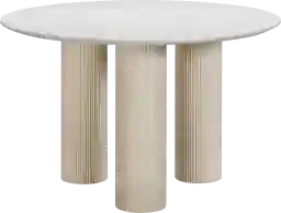 A pedestal base, like the fluted and channeled taupe base on this table, significantly reduces the "visual weight" of the furniture. By centering the support, it creates an open, airy feel that prevents a dining area from looking cluttered. Practically, it also maximizes legroom by eliminating corner legs, allowing you to tuck chairs in closer and move around the table without obstruction.