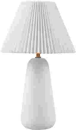 Elevate any space with the Chalmersr Bend White Lamp. Its textured matte-white ceramic base and refined white tapered pleated shade infuse contemporary allure into your decor. This lamp seamlessly harmonizes style and functionality, making it an exquisite addition to any room. Partial assembly may be required.
