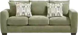 Yes, this sofa includes a total of four toss pillows to complete your living room look. You will receive two matching sage-green chenille pillows for a seamless aesthetic, as well as two patterned accent pillows designed to add contemporary depth and visual interest to the piece.