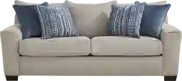This sofa is specifically engineered for relaxation, featuring extra-deep seats and attached scatterback-style pillow cushions. The pillow-back design allows you to sink into the furniture, providing a more plush and adaptive support system than a standard tight-back couch. These features, combined with the soft chenille upholstery, create a "sink-in" comfort level that is ideal for long movie nights or lounging.