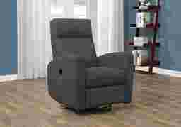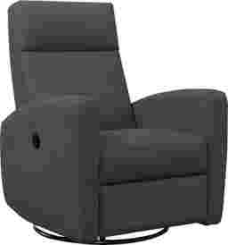 When you're ready to relax and unwind, look no further than this multi-functional Chambre power recliner chair! Upholstered in a durable charcoal grey polyester fabric with pocket coil seat cushioning, a comfortable padded back, headrest, and sleek armrests, the simple modern design of this recliner fits right in with today's contemporary spaces. Plug in the chair with the included power cord adapter and simply push in the side power button to smoothly slide down and recline as far back as 40 degrees. This versatile recliner chair glides back and forth and swivels a full 360 degrees making it the go-to chair in your living room, family room, bedroom, or nursery. Customer assembly is required.