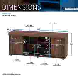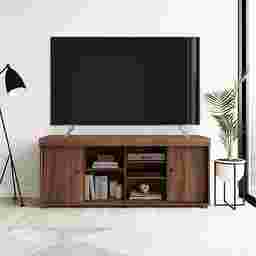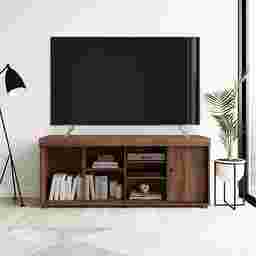 Elevate your living room or bedroom with this grounded yet sophisticated Chamto TV unit. Adding a modern-contemporary touch to you entertainment space. Emphasized by its earthy finish and clean-lined design, features three open shelves to organize your media accessories as well as two side storage spaces with additional closed door storage. It includes two openings for easy cable management and electronics ventilation. Made of sturdy particle board with painted surface. It fits a TV of up to 65 inches. Customer assembly is required.
