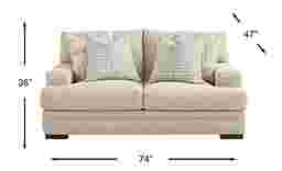 The calming hush of a coastal breeze. The quiet murmur of tall grass in a gentle wind. The cozy embrace of home. They all come together in the Channel Park collection from Cindy Crawford Home, where soft details and graceful curves invite moments of tranquility. Featuring sophisticated track arms and loose, pillowy back and seat cushions upholstered in light beige boucle, this transitional loveseat makes everyday relaxation feel like a serene, cloud-like escape. Seat cushions feature a plush custom blend of feathers, fiber and down surrounding a supportive foam core for comfort that’s soft yet structured. Coordinating accent pillows complete the richly textured look, while block legs in an espresso finish add a final touch of subtle elegance. Upholstery: 99% Polyester, 1% Acrylic.