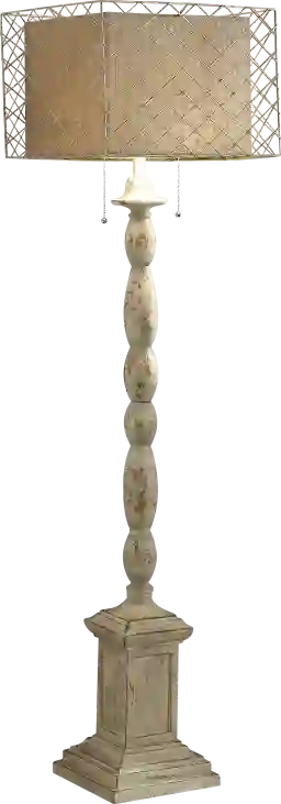 The Chantry Breeze floor lamp features a distressed antique white finish, complemented with a natural linen and metal encased shade. A lovely addition to any room! Some assembly required.