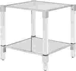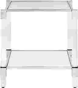 The Chapada silver end table is eye-catching with clear acrylic legs and an elegant steel frame with a tempered glass top and mirrored shelf. Acrylic legs reinforce the decorative design and match any modern or contemporary sofas, sectionals or futons. A sweeping tempered top and spacious mirrored shelf is perfect in your living room, family room, or den. Customer assembly is required.