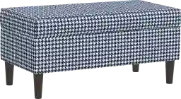 Include this delightful Charette, dual-purpose storage bench in any room design when you need somewhere to stash extra blankets and other useful extras. The top offers a hinged lid, and the entire piece is skillfully hand upholstered in geometric fabric atop wooden legs. Made to order, you'll find it as useful as it is pleasing to look at Our transitional design makes this piece a go-to pick for nearly any room in the home. This piece is made to order and may take up to 6 weeks to deliver. Customer assembly is required.