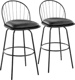 This product arrives as a set of two and requires customer assembly. It is designed for straightforward setup, with the metal backrest, armrests, and tapered legs connecting to the central swivel plate. We recommend following the included manufacturer's instructions carefully and ensuring all hardware is tightened securely to maintain the stool's stability and weight-bearing integrity.