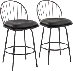 Bring farmhouse style to your kitchen or bar area with the Charlias VII fixed-height counter stool. Our updated take on a traditional spindle-back, the Charlias VII counter stool is constructed with tapered metal legs and built-in footrest, metal backrest and armrests, and a removable faux leather upholstered seat. Customer assembly is required.
