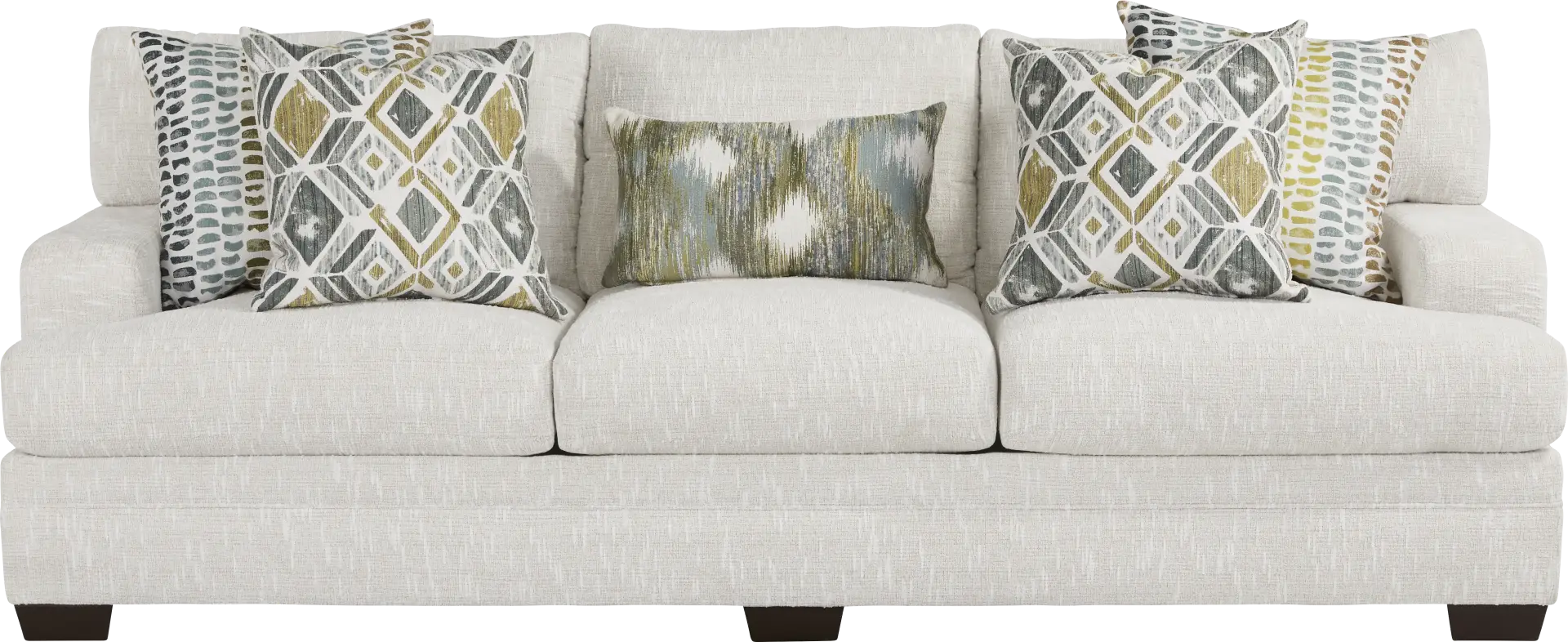 Comforting spirit, assertive flair and a glint of playfulness in the Charlton Park gel foam sleeper sofa enliven the everyday with an irresistibly unique sense of possibility. The ivory chenille upholstery in this contemporary piece is streaked through with raised yarns, adding visual and physical texture. Extra wide track arms invite you to ease into sumptuous reversible back cushions on a wedge-shaped back. T-cushion seats are accented by the stitched border that wraps around the front of the base. Adding a touch of contrast, the look is completed with triangle legs in a dark finish. Nestled away for overnight company, the Nature's Bed gel foam mattress with outstanding body contouring support provides a cool and comfortable place for rest. Upholstery: 100% Polyester.
