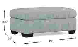 The 43"w x 25"d footprint of this rectangular ottoman is ideal for urban apartments or more compact living spaces. Its shallow 25-inch depth allows it to provide ample surface area without obstructing traffic flow, a common challenge with larger square cocktail ottomans. For maximum functionality in small spaces, you can place a decorative tray on the flat top cushion to use it as a stable surface for drinks and remotes.