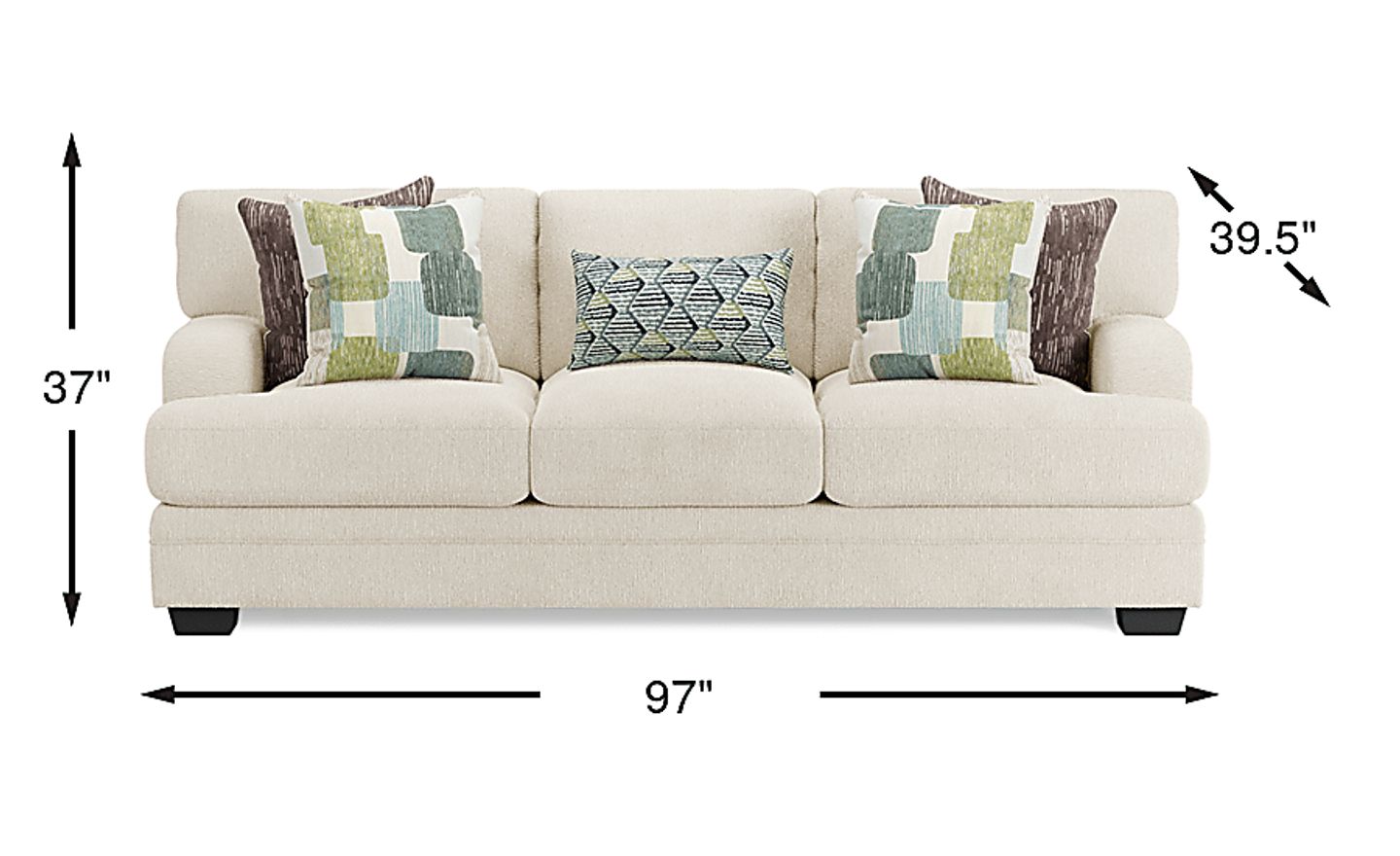 Add a luxe look to your space with the Charlton Street sofa. Contemporary in style, this piece boasts clean lines, elegant track arms and soft-to-the-touch fabric. Woven upholstery tops the plush seat and back cushions, combining style and comfort. Loose seat cushions allow for reversible use and extend the lifetime of your sofa. Included toss pillows add various hues of blue and green against its sophisticated off-white tone. Upholstery: 100% Polyester