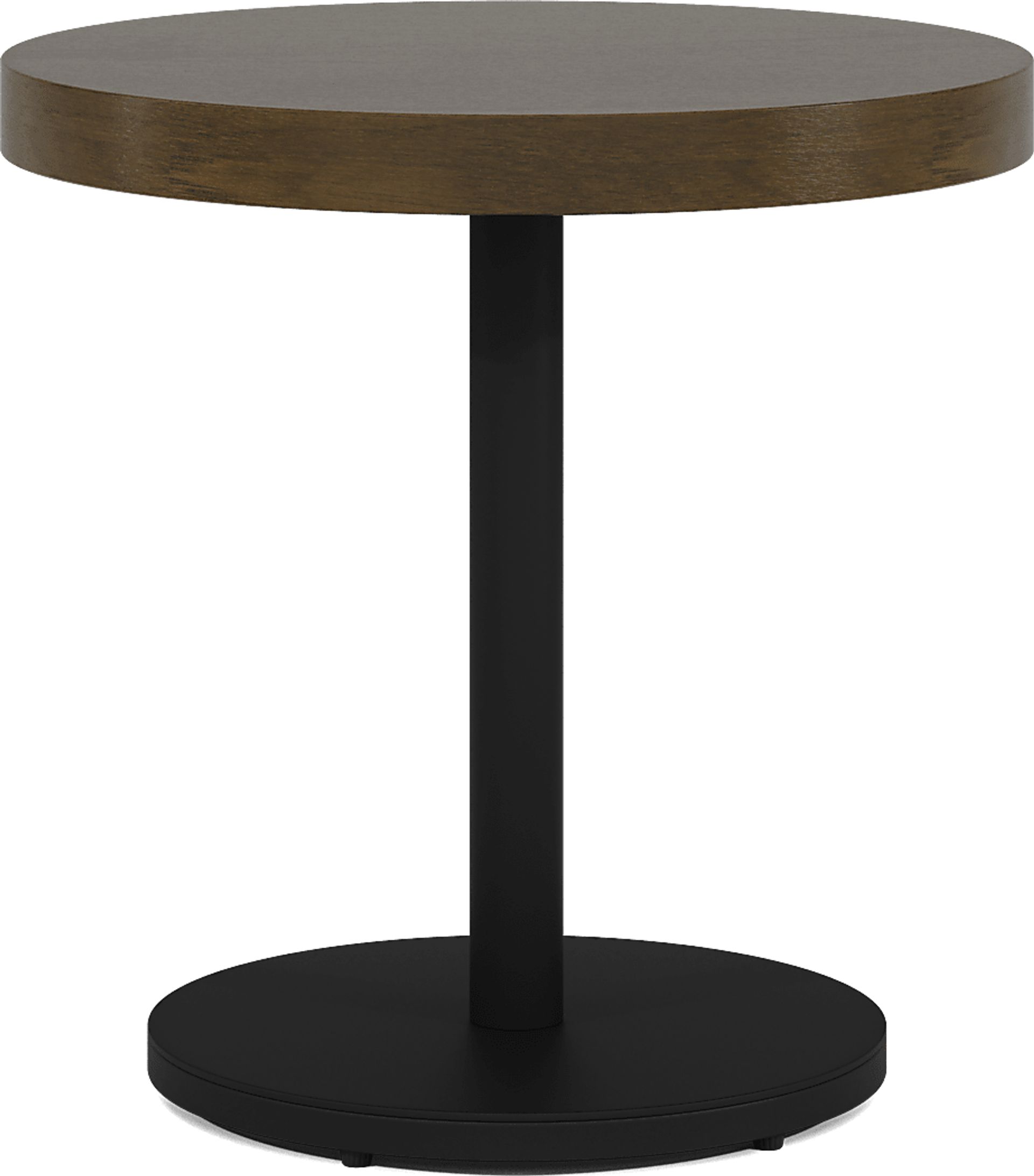 This table features a wood top in a dark brown finish designed to showcase the material's natural warmth while providing a versatile surface for everyday life. To ensure the longevity of the finish, we recommend using coasters for drinks and felt pads under heavy decor. The black-finished pedestal base provides a sturdy, weighted foundation that adds to the overall structural integrity of the piece.