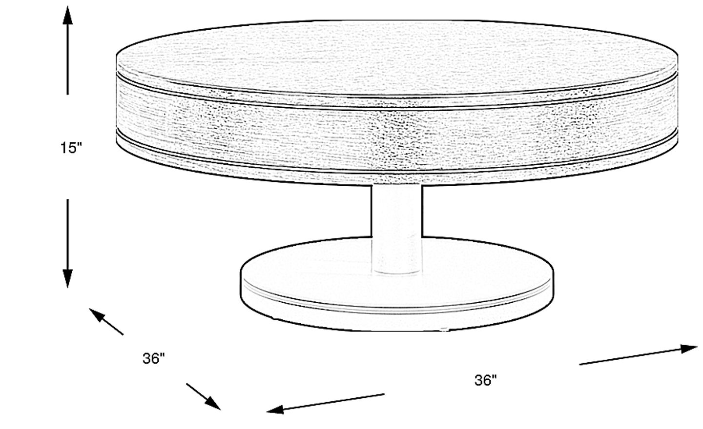 To create a balanced look, we recommend following the "two-thirds rule," where your cocktail table is roughly two-thirds the length of your sofa. With a 36-inch diameter, this table is perfectly scaled for standard sofas and smaller sectionals. Additionally, the round shape allows for better flow in your seating area, providing about 18 inches of clearance between the table and the couch for comfortable legroom and easy movement.