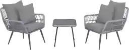 Crafted from durable rattan and strong iron, the Charolaisy gray 3 Pc chat set showcases style that's long-lasting in every way. Chic and comfortable, with removable cushions that are also washable, this set is inviting and outdoor-friendly. A compact end table holds a glass of wine or a cup of coffee, so you can lounge poolside, by the firepit, or take time to enjoy nature. Create your perfect corner or coziest alcove for a space that's all your own. Customer assembly is required.