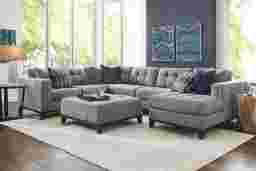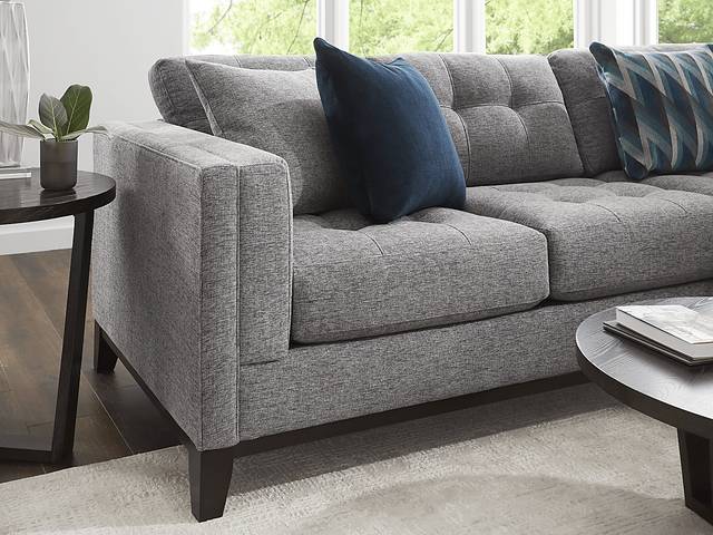 Exuding effortless sophistication and warm intimacy, the Chatham sectional from Cindy Crawford Home combines upscale style and casual design to achieve a charmingly cozy look. Upholstered in a soft chenille fabric, this traditional sectional features spacious seating, deep plush tufted cushions and stylish padded track arms for a smooth and comforting feel. The espresso finish in the wood base enhances the sectional's cool gray color, offering the perfect look to your living space. Upholstery: 100% Polyester.