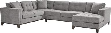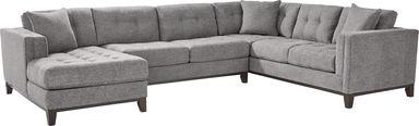 Exuding effortless sophistication and warm intimacy, the Chatham sectional from Cindy Crawford Home combines upscale style and casual design to achieve a charmingly cozy look. Upholstered in a soft chenille fabric, this traditional sectional features spacious seating, deep plush tufted cushions and stylish padded track arms for a smooth and comforting feel. The espresso finish in the wood base enhances the sectional's cool gray color, offering the perfect look to your living space. Upholstery: 100% Polyester.