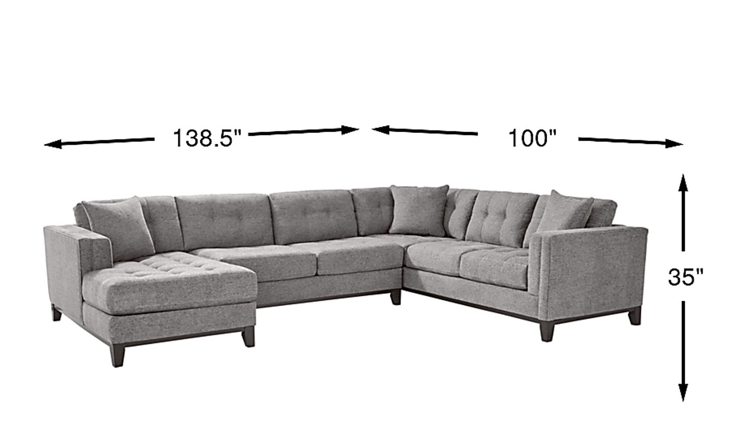 With an expansive footprint of 138.5"w x 100"d, this 3-piece sectional is designed to be the anchor of a spacious suburban home or an open-concept living area. To ensure a successful delivery, we recommend measuring the width and height of all entryways, hallways, and stairwells. Because the item is delivered in three separate pieces, it is generally more manageable to navigate through standard home layouts than a single-frame sofa of comparable size.