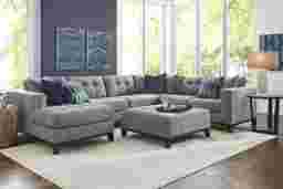 Exuding effortless sophistication and warm intimacy, the Chatham sectional from Cindy Crawford Home combines upscale style and casual design to achieve a charmingly cozy look. Upholstered in a soft chenille fabric, this traditional sectional features spacious seating, deep plush tufted cushions and stylish padded track arms for a smooth and comforting feel. The espresso finish in the wood base enhances the sectional's cool gray color, offering the perfect look to your living space. Upholstery: 100% Polyester.