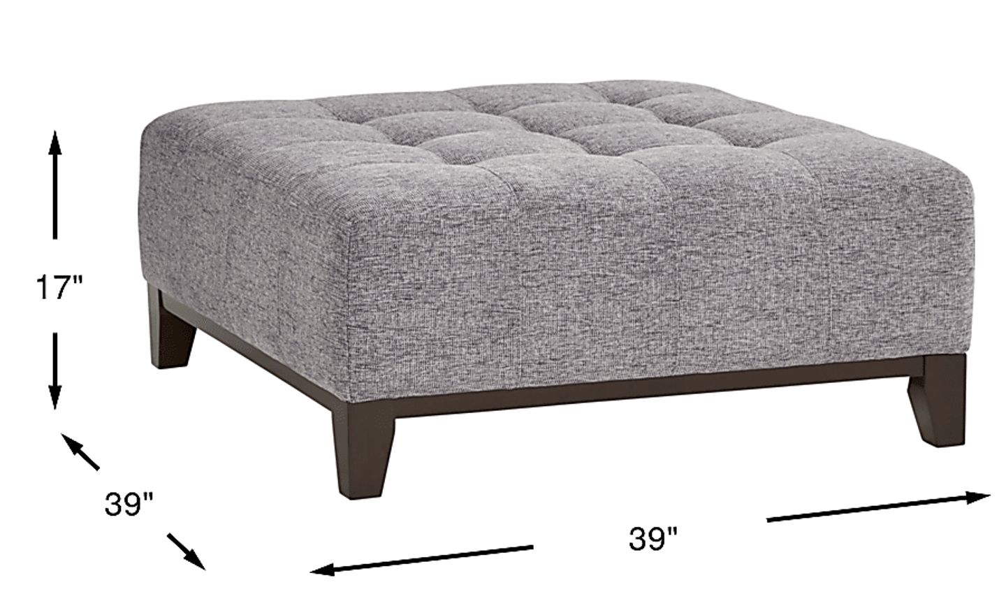 A cocktail ottoman offers a unique blend of comfort and utility that a hard-surfaced coffee table cannot provide. The plush, tufted surface provides a comfortable place to kick up your feet or serves as additional soft seating during social gatherings. When used for entertaining, its substantial 39-inch square surface easily accommodates a decorative tray to hold drinks and snacks, offering the functional stability of a table with the inviting warmth of Cindy Crawford Home design.