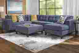Exuding effortless sophistication and warm intimacy, the Chatham sectional from Cindy Crawford Home combines upscale style and casual design to achieve a charmingly cozy look. Upholstered in a soft chenille fabric, this traditional sectional features spacious seating, deep plush tufted cushions and stylish padded track arms for a smooth and comforting feel. The espresso finish in the wood base enhances the sectional's vibrant blue color, offering the perfect look to your living space. Upholstery: 100% Polyester.