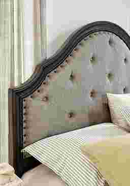 Distinctive details make the Chatsfield bed a beautiful focal point for any bedroom. This chic transitional bed features a gracefully curved headboard boasting plush button tufted upholstery bordered by nailhead accents. The low panel footboard has picture frame moulding, eye pleasing veneers and bun feet. Crafted using solid wood, the bed has an on-trend gray finish that adds richness and depth to the bed's aesthetic. Mattress and foundation (if required) sold separately. Bed shown is queen size.