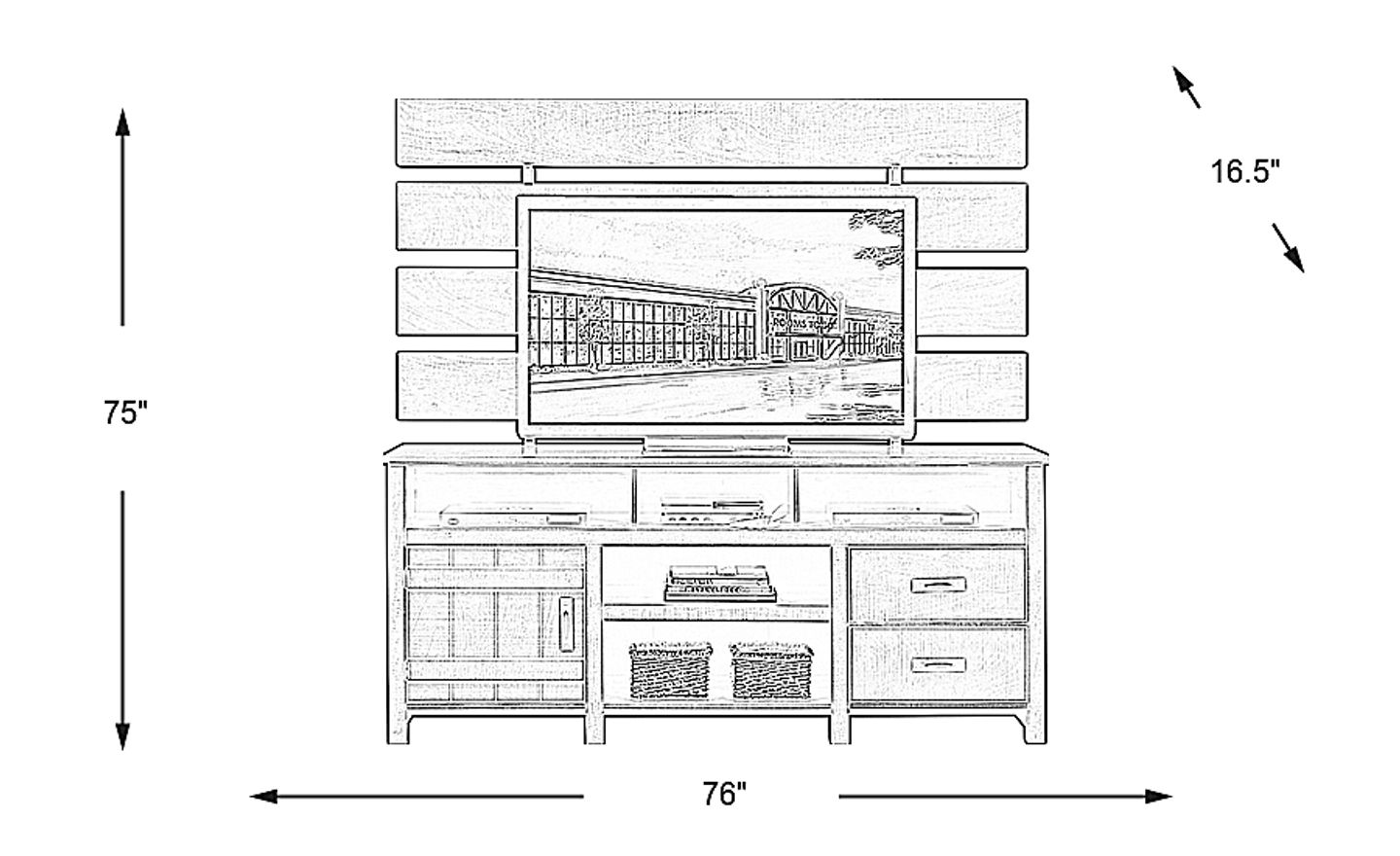 76"w x 16.5"d x 75"h