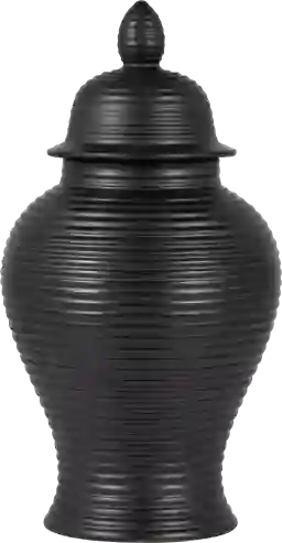 A solid black accent like this jar provides a bold, sophisticated focal point. To maximize its impact in a contemporary space, our styling experts suggest creating contrast by placing it against lighter-colored walls or near metallic accents like gold or silver. Because of its 18-inch height, it works exceptionally well when grouped with other items of varying heights to add visual depth to your room.