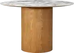 The Chaytor brown round dining table is not only visually a piece of art but also a functional addition to your home. The beautiful design and space is perfect for small dinner parties or a meal with your family. This table's ceramic top showcases intricate white and dark brown marble and the natural ash veneer legs create a harmonious and modern design. Customer assembly is required.