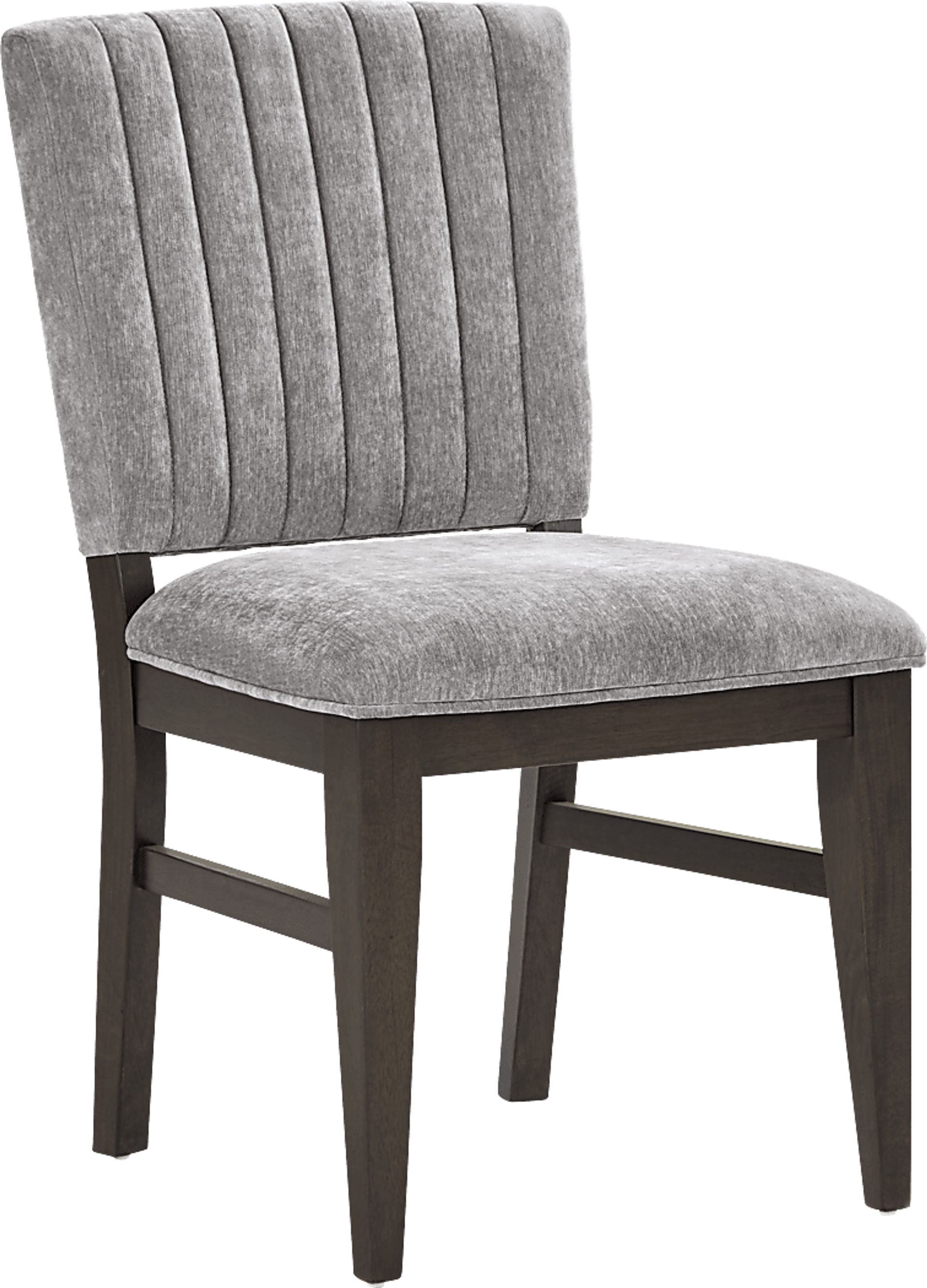 Highly refined lines mingle with the elegant curves of the Cheetham Hill side chair to effortlessly set the atmosphere for unforgettable meals and get-togethers. Crafted of hardwood solids in birch veneers, this upholstered chair features a velvety gray fabric with captivating channel details. The wood legs of this piece are gently tapered and finished in a rich espresso color.