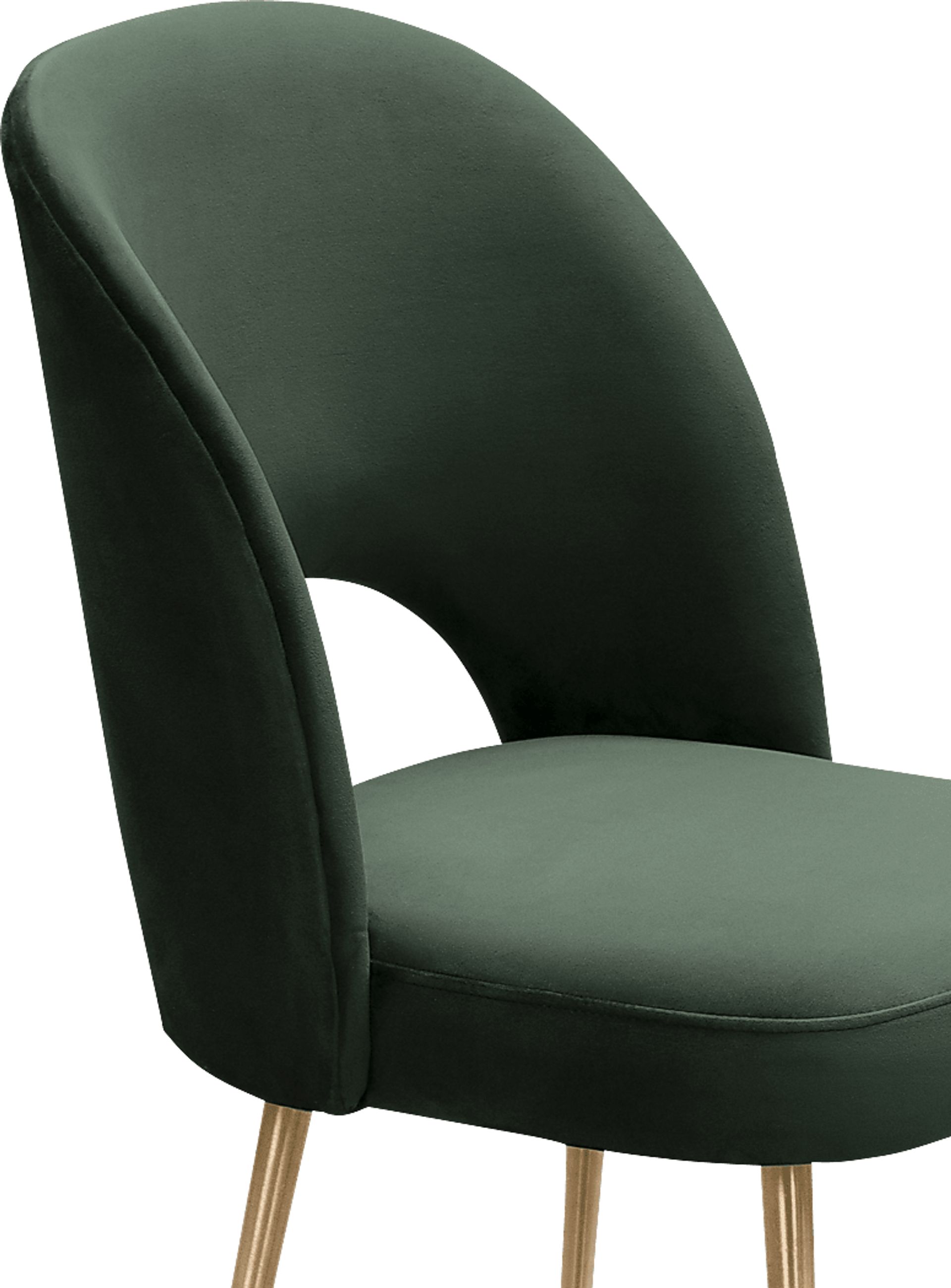 The Chelsera dining chair offers the perfect blend of mid-century modern and Hollywood glam. With sumptuous velvet upholstery and gold antenna shaped steel legs this chair is a definite winner and is versatile to match any decor. Customer assembly is required.