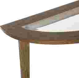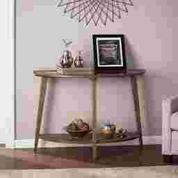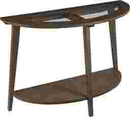 Enjoy the look of a round table, and save half the space, with this burnt oak Chelsworth console table. Enhance your space by displaying meaningful decor and photographs on the tempered glass tabletop and storing entryway accessories on the half-moon shelf. Impeccable for abutting walls, sofas, and larger furniture, this glass top console table organizes and enriches any room. Customer assembly is required. Customer assembly is required.