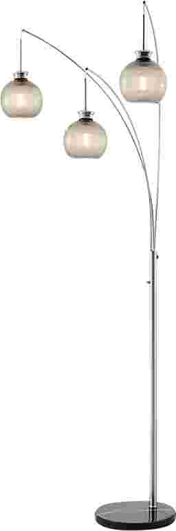 Transform your living room with the Chene View Silver Floor Lamp, adorned with brushed nickel finish, striking a perfect balance between timeless elegance and mid-century modern aesthetics. The heavy black marble base provides a stable foundation for the arched frame, making it a perfect lighting solution for sectionals and sofas. A translucent smoked finish that highlights the grooves and ridges in the sparkling acrylic material dome shade serves as its centerpiece, infusing your space with artistic allure. Partial assembly may be required.